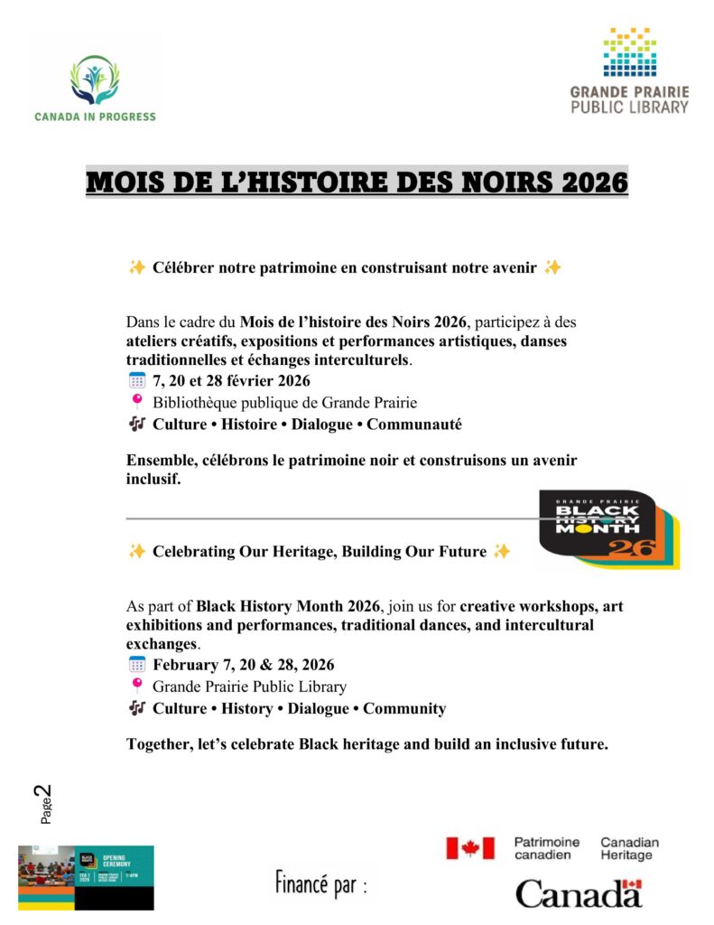 Café-Rencontre FrancophoneDernier samedi du mois10h00 – 12h00Bibliothèque de Grande Prairie